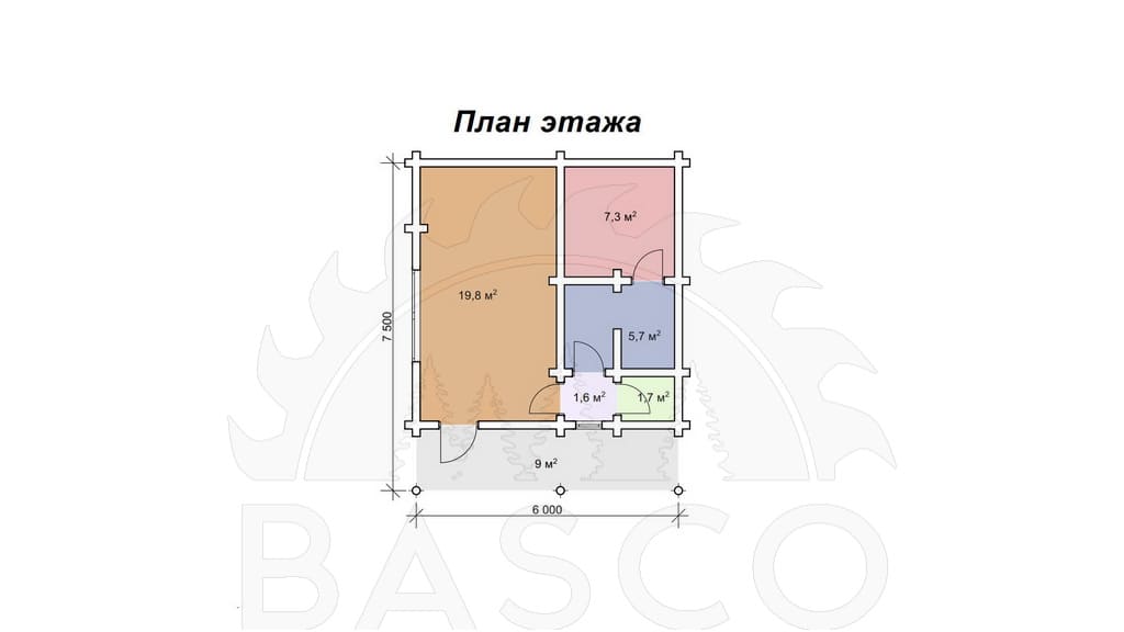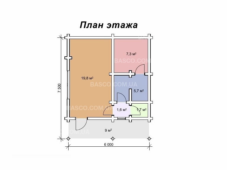 Количество комнат 2Габариты, м 7,5 х 6