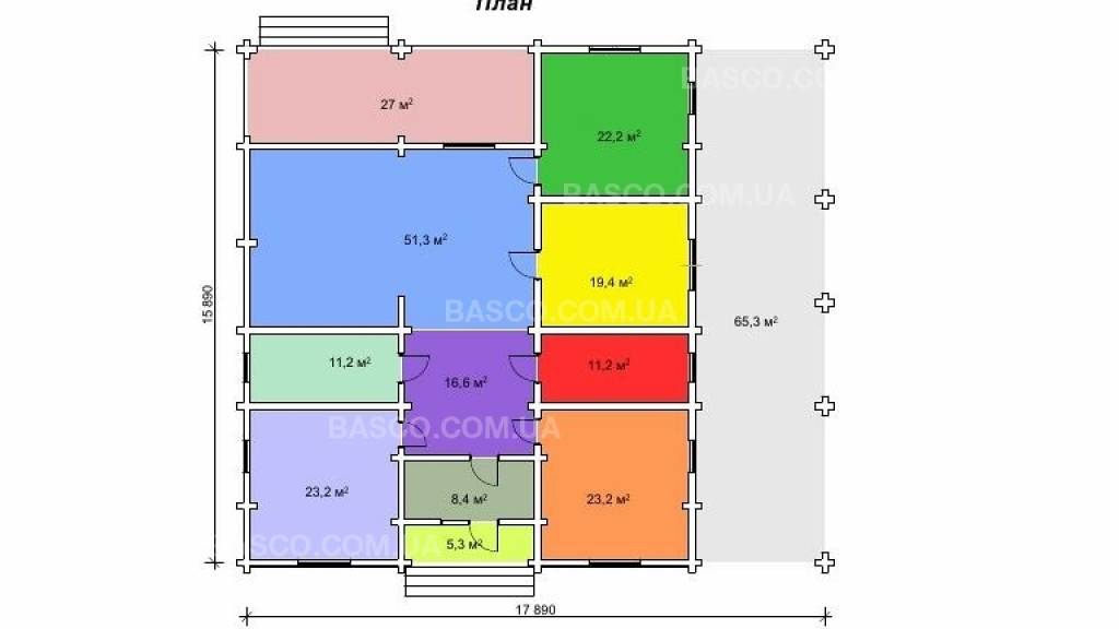 Количество комнат 3Габариты, м 15,8 х 17,8
